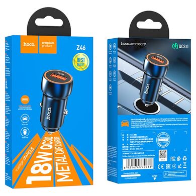 Z46 Blue shield, автомобильное зарядное устройство, один выход USB 18W, поддержка протоколов быстрой зарядки, набор с кабелем 1м Type-C или Micro-USB