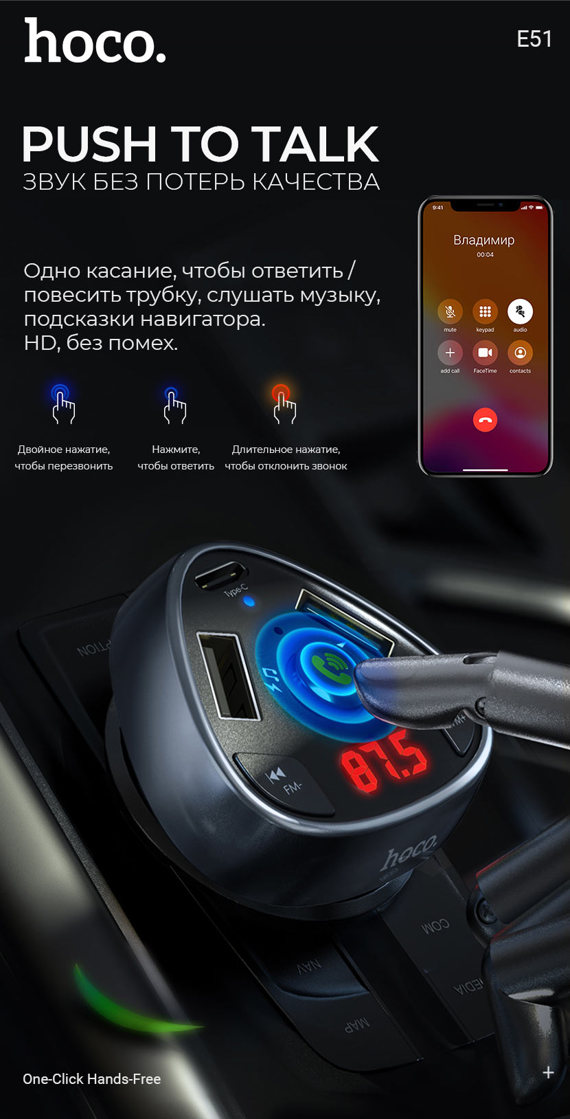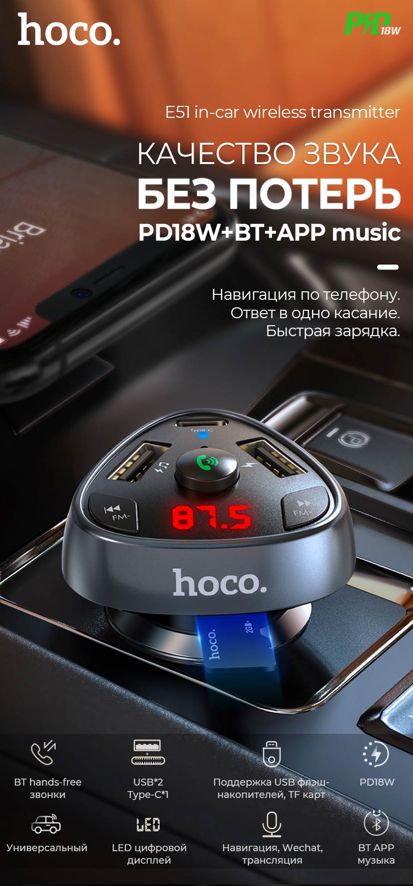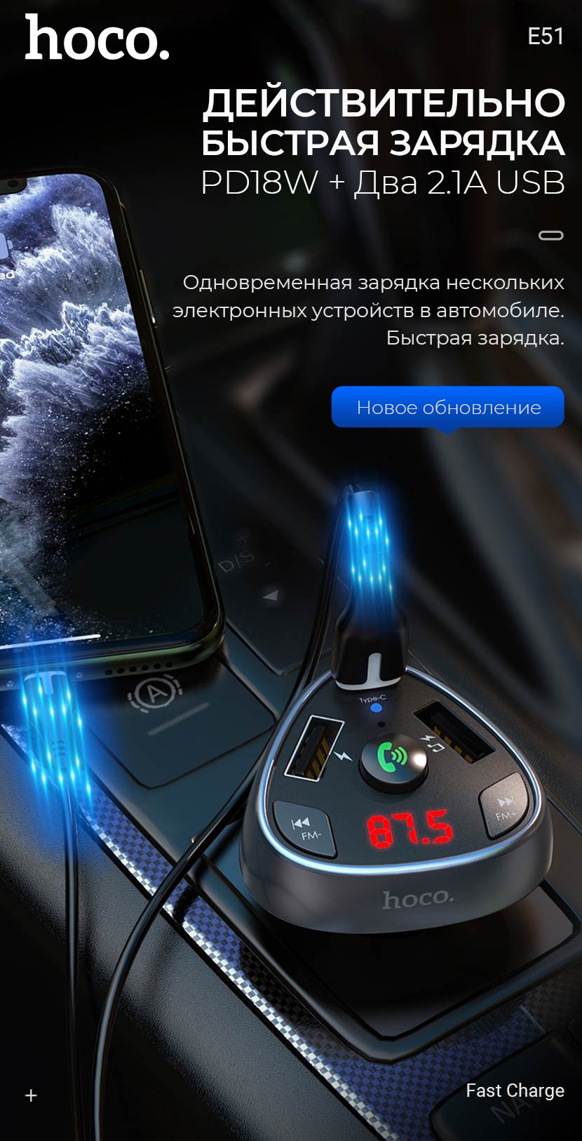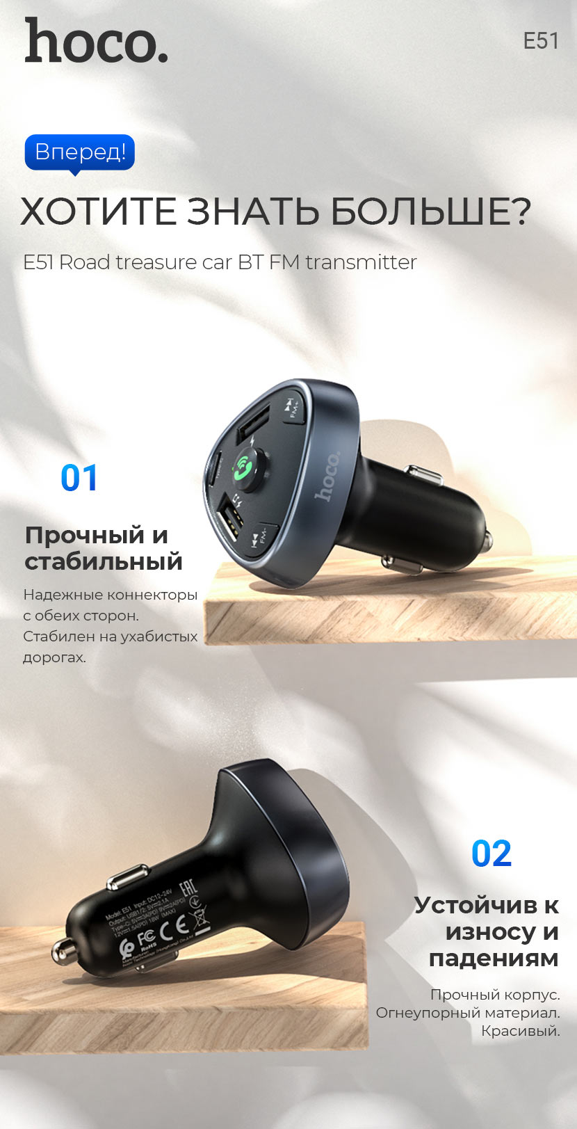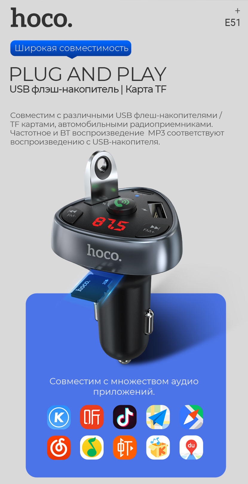 Главная Аксессуары для авто Автомобильные зарядные устройства Автомобильное зарядное устройство Hoco “E51 Road treasure”
