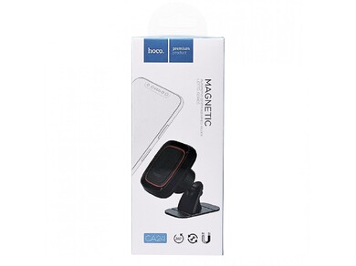Автодержатель Hoco CA24 - полезный аксессуар для водителей, которые часто используют смартфоны в авто. Держатель имеет приятное на ощупь прорезиненное покрытие. Используется магнитное крепление с телефоном, под заднюю панель которого размещена или наклеена специальная магнитная пластина.