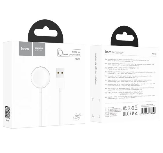 Беспроводное зарядное устройство hoco CW39 - это прекрасный аналог зарядного устройства от Apple для смарт-часов Apple Watch. Устройство полностью соответствует стандартам качества Apple и идеально подходит для Apple Watch. Заряжать часы при помощи данного девайса можно, как через сетевое зарядное устройство (или автомобильное зарядное устройство) с разъемом USB, так и через порты ноутбука/ПК с выходом USB. Устройство совместимо с теми же моделями док-станций/держателей/подставок, что совместимы с зарядным устройством от Apple.