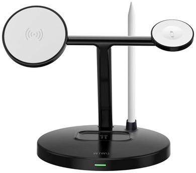 WIWU Wi-W032 Magnetic 4 in 1 Cableless Charger - это современное беспроводное зарядное устройство, способное одновременно заряжать до четырёх устройств: смартфон, умные часы, наушники и дополнительный гаджет.