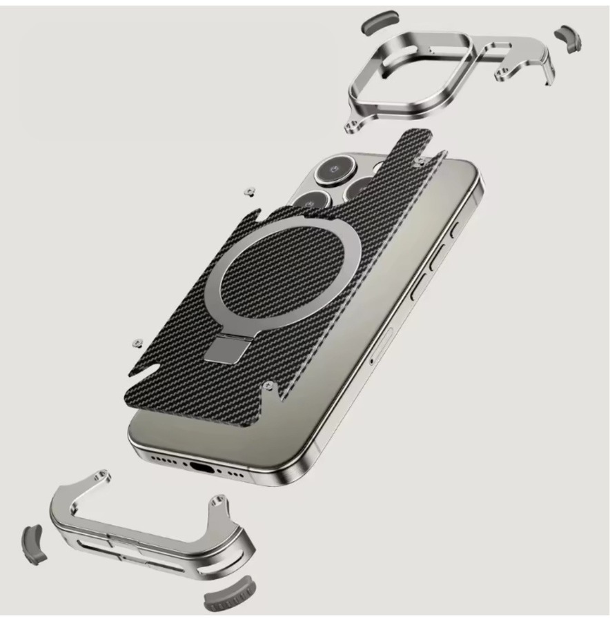 Этот чехол для телефона выполнен в современном стиле с использованием карбоновых элементов. Он включает в себя: