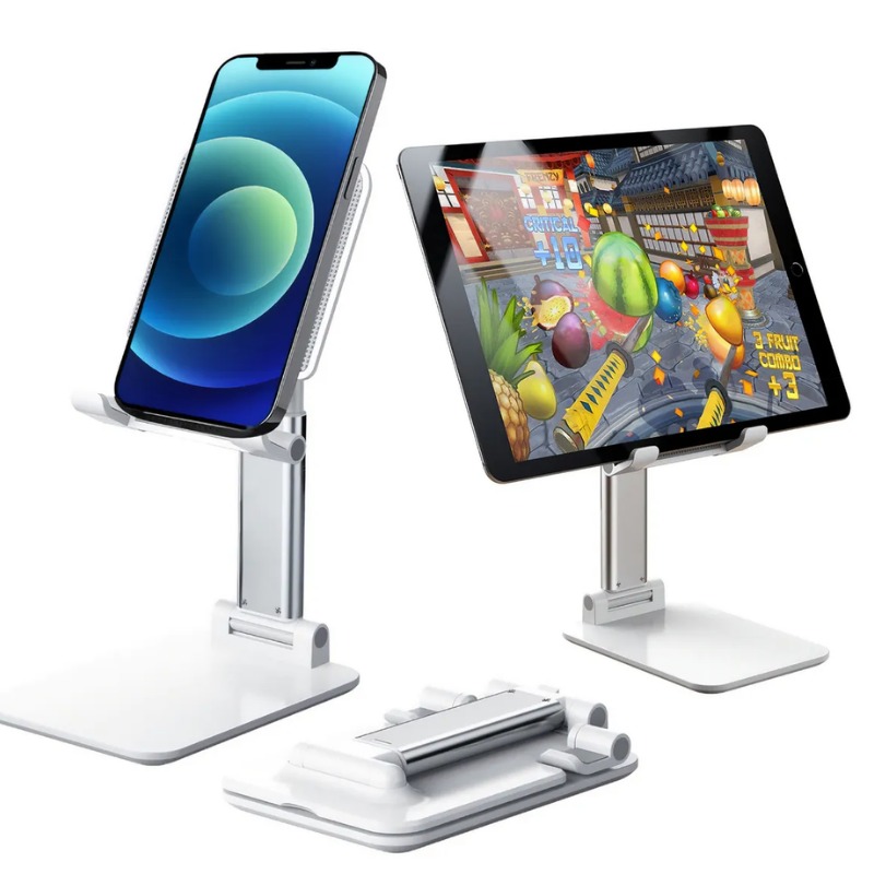 Компактный складной настольный держатель-подставка, для мобильных устройств до 7 дюймов, для дома и офиса, регулируется по высоте и углу наклона. Благодаря рифленой поверхности, смартфон надежно удерживается в любом положении под любым углом.