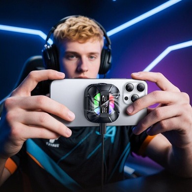 Кулер-вентилятор для смартфона Hoco GA5 – компактное охлаждение для ситуаций, когда телефон заметно нагревается под нагрузкой: во время игр, стриминга, видеозвонков или длительной съемки. Модель подключается через Type-C и работает стабильно, помогая быстрее уводить тепло и снижать вероятность тротлинга. Для крепления предусмотрено два варианта: магнитная пластина для быстрого монтажа или надежный зажим, подходящий для смартфонов шириной 65–95 мм. Внутри установлен вентилятор с 7 лопастями, развивающий до 5300 об/мин, при этом устройство рассчитано на тихую работу, чтобы не мешать общению и записи звука. Три режима охлаждения позволяют выбрать нужную интенсивность, а цифровой дисплей отображает температуру в реальном времени. Дополняет конструкцию RGB-подсветки, а небольшой вес 70 г делает аксессуар удобным для переноски и использования «на ходу».