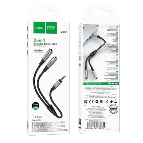 Главная Переходники Переходник AUX 3.5мм (папа) - 2 AUX 3.5мм (мама) hoco UPA21 / 25см