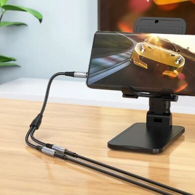 Переходник AUX 3.5мм (папа) - 2 AUX 3.5мм (мама) hoco UPA21 / 25см