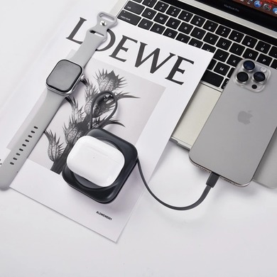 1. Большая емкость 10000 мАч для длительного времени автономной работы, поддержка беспроводной зарядки для телефонов, наушников и часов, встроенные кабели Lightning + Type-C.
