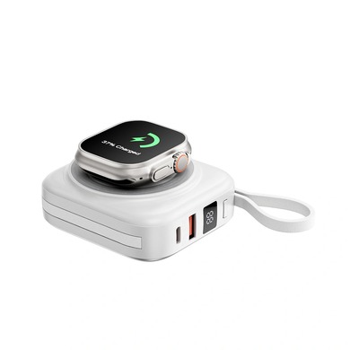 Упростите свои потребности в электропитании с помощью портативного зарядного устройства WiWU Cube 5-в-1. Это универсальный портативный зарядный центр, предназначенный для питания всех ваших устройств. На основной поверхности расположен магнитный беспроводной зарядник мощностью 15 Вт для вашего смартфона и специальный модуль мощностью 2,5 Вт для ваших Apple Watch. В боковых сторонах аккуратно размещены два встроенных кабеля для быстрой зарядки — один USB-C и один Lightning — готовые к подключению вашего планшета или других гаджетов. Нужен еще один порт? Дополнительный порт USB-A поддерживает сверхбыструю зарядку мощностью до 22,5 Вт. Четкий цифровой дисплей отображает оставшиеся 10000 мАч заряда, а компактный кубический дизайн со встроенным ремешком делает его невероятно удобным для переноски. Это единственное портативное зарядное устройство, которое вам нужно, чтобы все ваши устройства были заряжены, где бы вы ни находились.