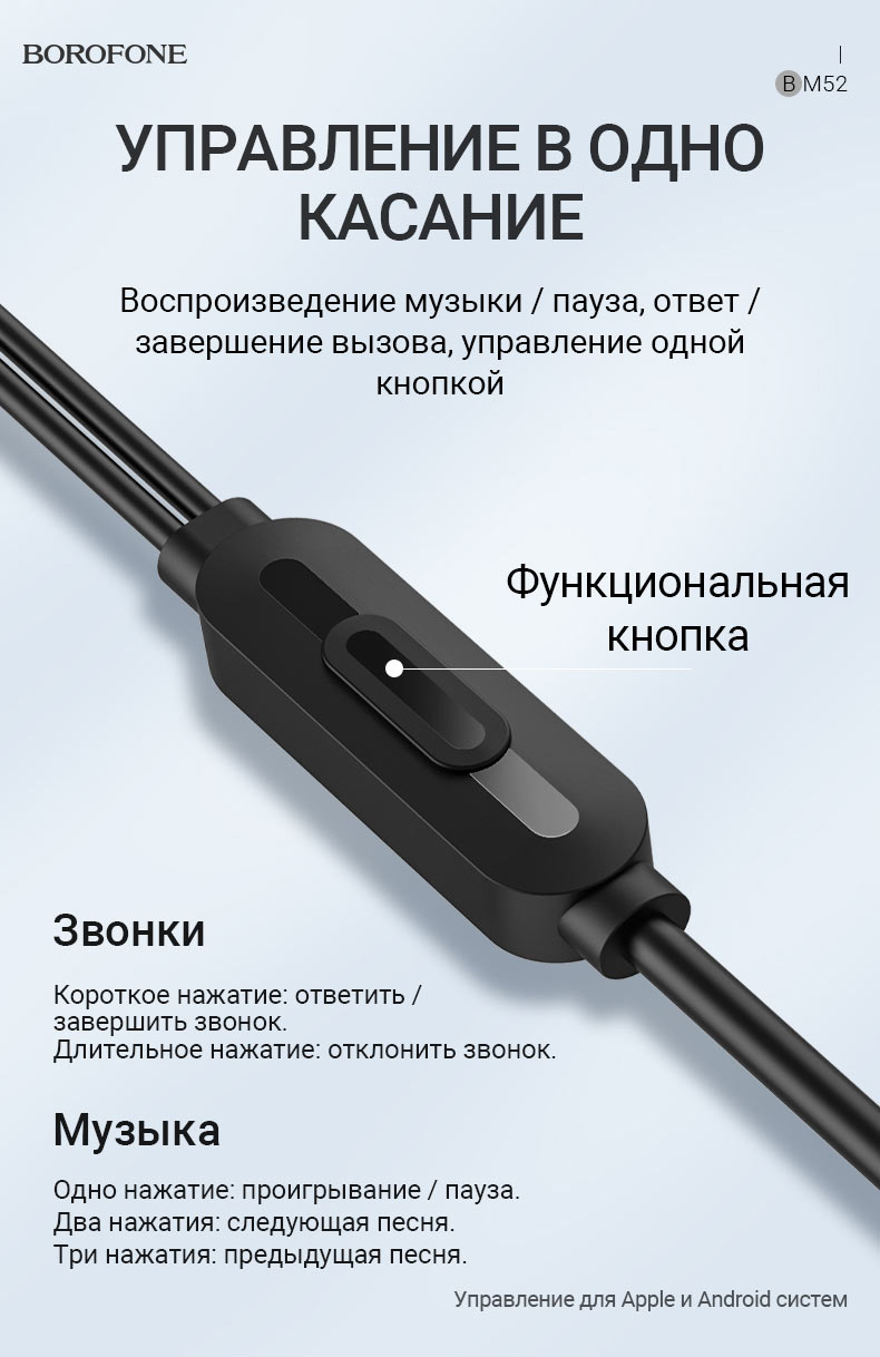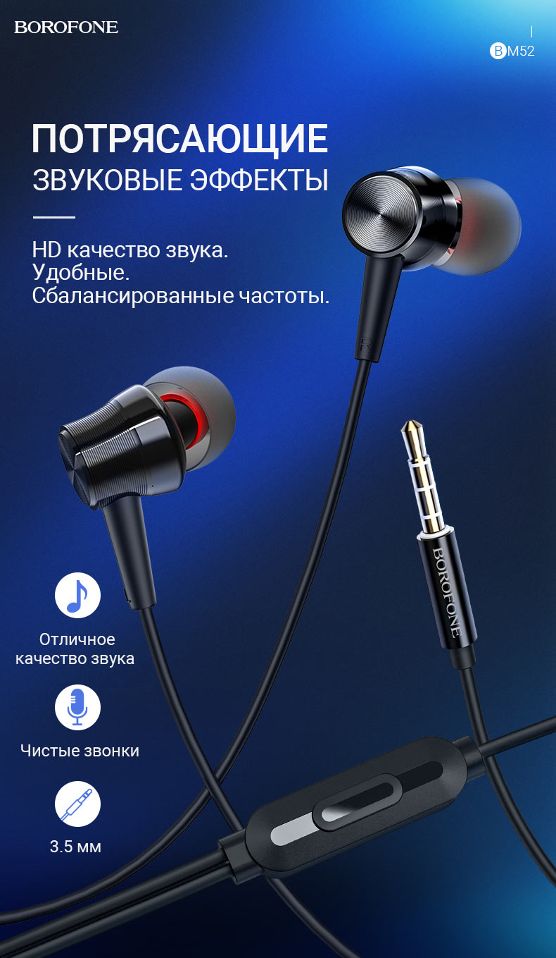 Главная Наушники/Гарнитуры Проводные гарнитуры Проводные наушники Borofone BM52 Revering