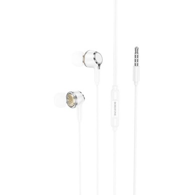 Проводные наушники BOROFONE BM90 белого цвета имеют внутриканальную конструкцию и миниатюрные вкладыши с динамическими излучателями и сменными амбушюрами. Они создают закрытое акустическое оформление в частотном диапазоне 20-20000 Гц. Благодаря этому звуки извне не помешают владельцу наслаждаться музыкой или любимыми подкастами.