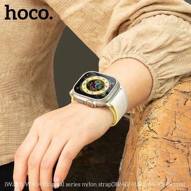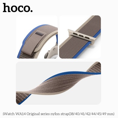 Ремешок Hoco WA14 для Apple Watch  – это стильное и удобное дополнение к вашим смарт-часам. Изготовлен из крепкого нейлонового материала, он сочетает в себе высокую износостойкость, мягкость и комфорт при повседневном использовании. Легкий и дышащий, он обеспечивает комфортное ношение в течение всего дня, не вызывая дискомфорта даже во время активных занятий спортом. Застежка на липучке позволяет легко регулировать длину ремешка, обеспечивая надежную фиксацию на запястье. Совместимость с различными моделями Apple Watch делает этот ремешок универсальным решением для пользователей ценящих качество, удобство и стиль.