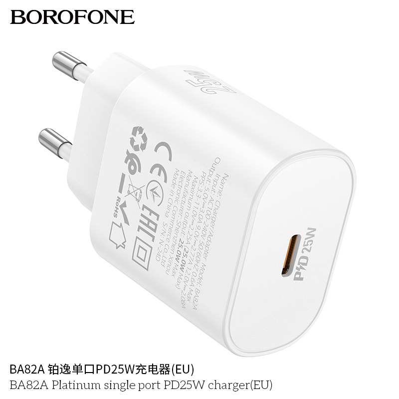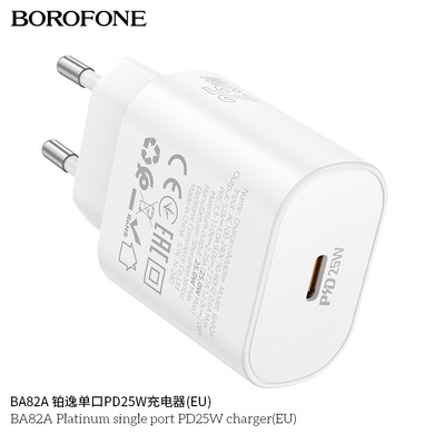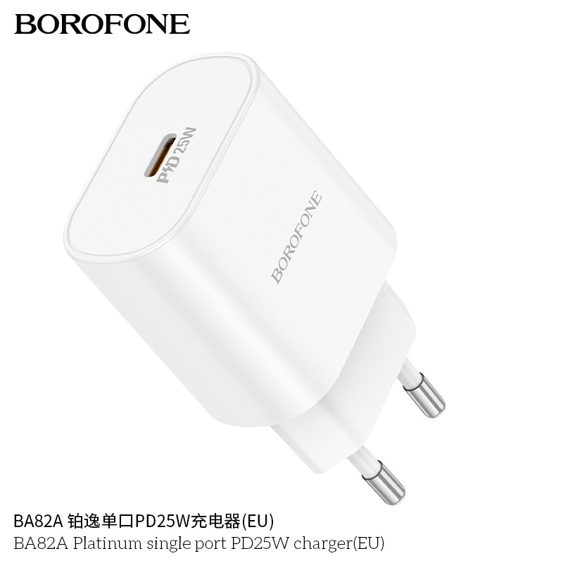 Сетевое зарядное устройство Borofone BA82A - компактный адаптер питания, который подойдет для подзарядки мобильных устройств. Модель заменит собой штатный зарядный блок при его утере или поломке, благодаря чему вы сможете продолжить пользоваться вашим смартфоном. Конструкцией сетевого зарядного устройства Borofone BA82A предусмотрен порт USB Type-C, который позволит заряжать мобильное устройство при наличии подходящего кабеля. Выходная мощность адаптера питания равняется 25 Вт.