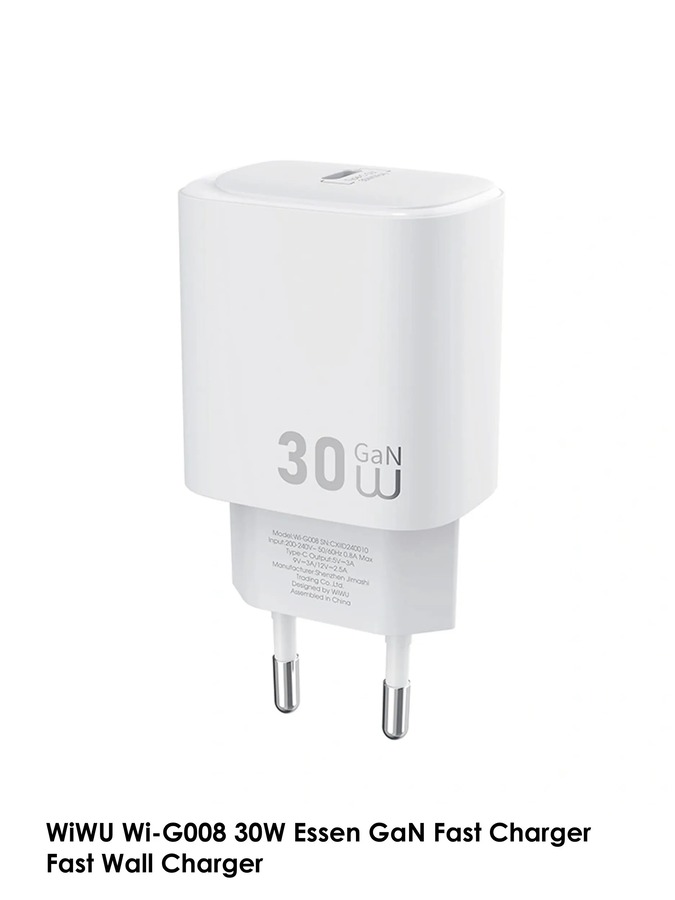 WiWU Wi-G008 30W - компактное и мощное сетевое зарядное устройство поддерживает технологию GaN , что позволяет сделать его конструкцию очень компактной без ущерба для мощности и эффективности. Оно предназначено для быстрой зарядки современных смартфонов, планшетов и других гаджетов.