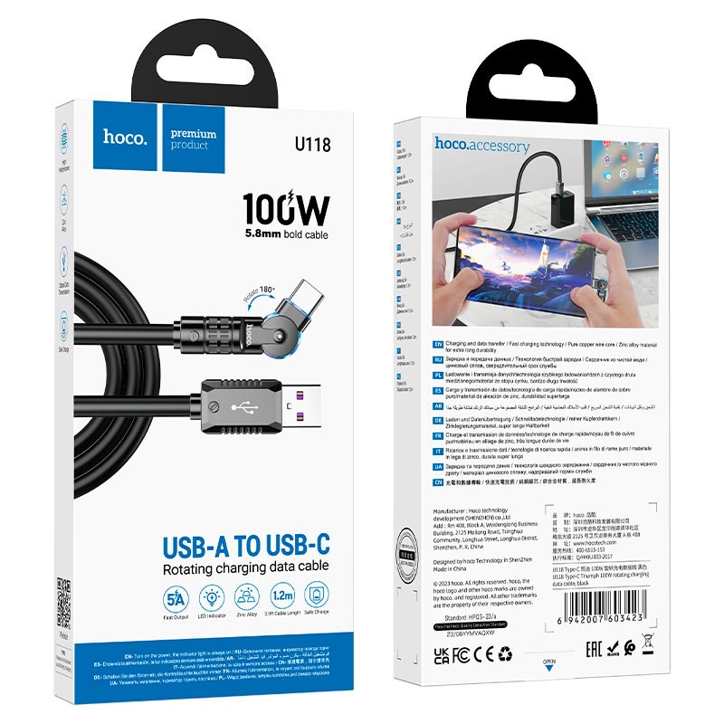 Главная Шнуры / кабели Type-C кабель Hoco USB-Кабель Hoco “U118 Triumph” 100W