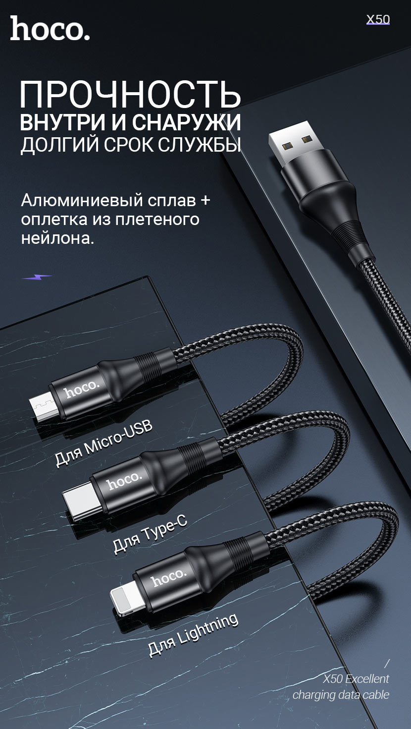 Главная Шнуры / кабели Lightning кабель (iPhone) USB-Кабель Hoco “X50 Excellent”