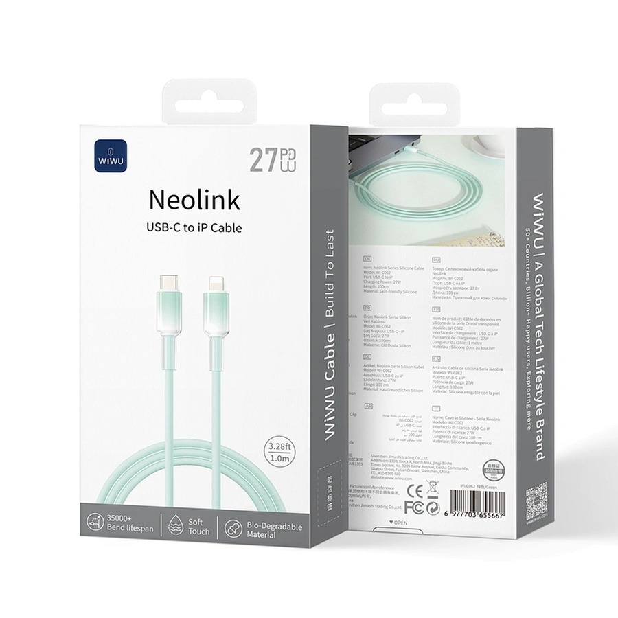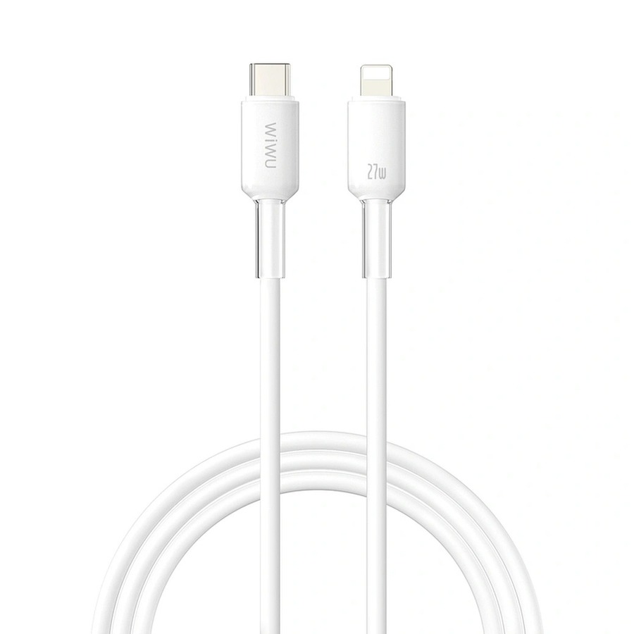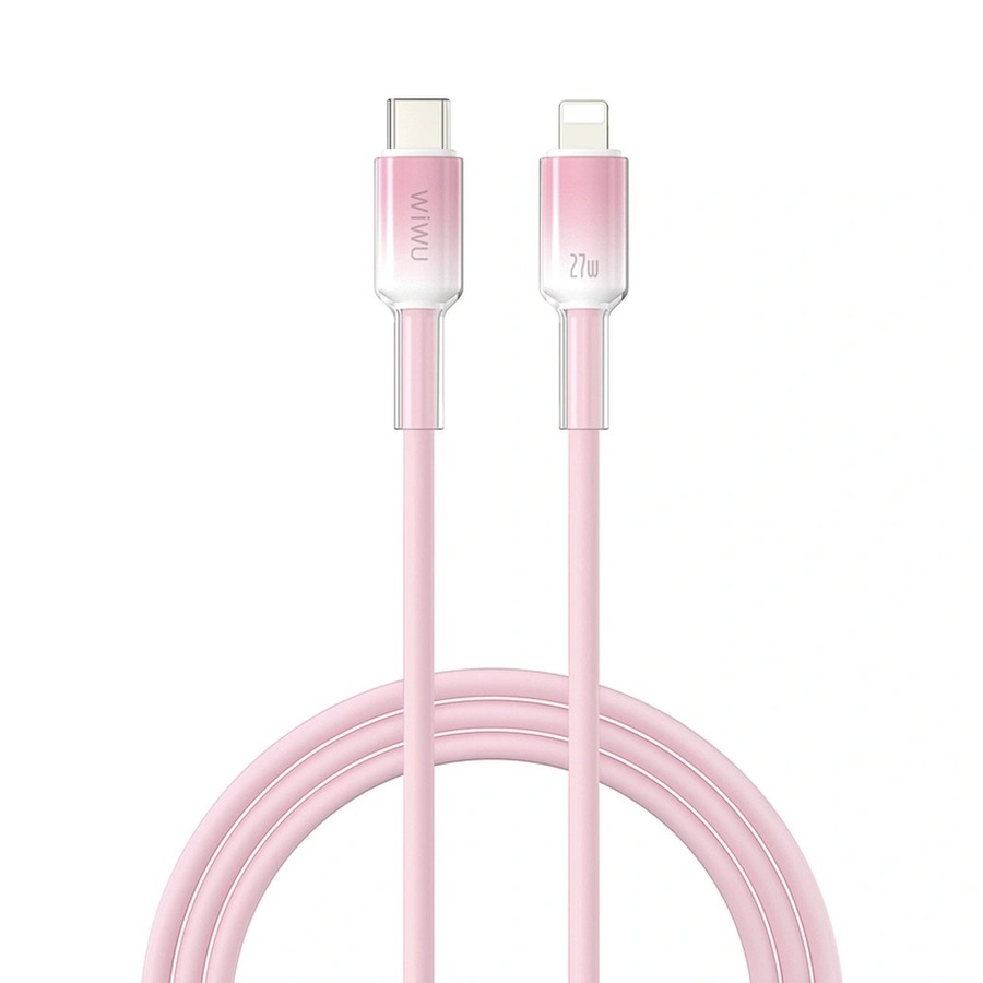 Кабель WiWU Wi-C062 — это кристально чистый зарядный кабель USB-C — Lightning, изготовленный из высококачественного жидкого силикона. Обеспечивает быструю зарядку мощностью 27 Вт для iPhone и iPad, имеет гибкое мягкое покрытие, предотвращающее спутывание и перегибы. Доступен в белом цвете длиной 2 м и розовом или зеленом цвете длиной 1 м. Этот кабель сочетает в себе прочность и стильный минималистичный дизайн. Соответствует стандартам Q/RMM018-2017 для безопасной и эффективной зарядки.