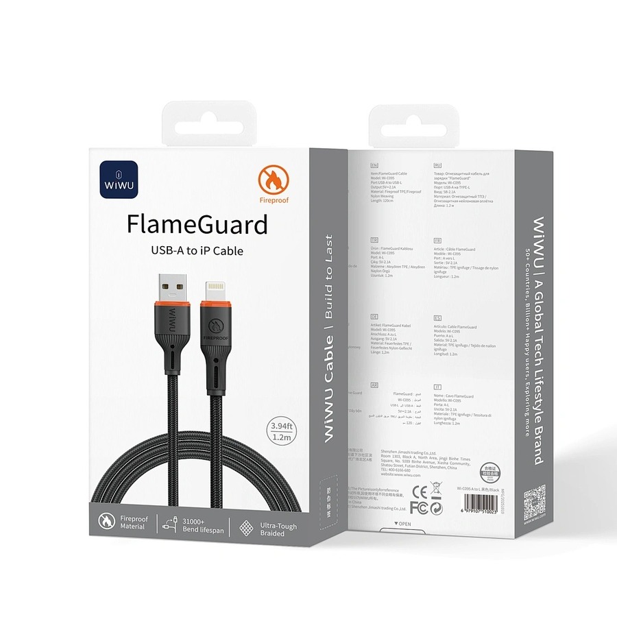 Заряжайте с полной уверенностью. Кабель WiWU FlameGuard тщательно разработан для решения скрытых опасностей традиционных зарядных кабелей, таких как возгорание и перегрев. Его сердцевина и оплетка изготовлены из современных огнестойких материалов; даже при воздействии высоких температур он не воспламеняется и самозатухает, как только отходит от источника пламени. Помимо превосходной безопасности, FlameGuard рассчитан на длительный срок службы. Высокоплотная нейлоновая оплетка невероятно прочна и устойчива к истиранию, оставаясь при этом мягкой и гибкой для удобства использования и хранения. Это идеальное сочетание безопасности, долговечности и повседневного удобства.