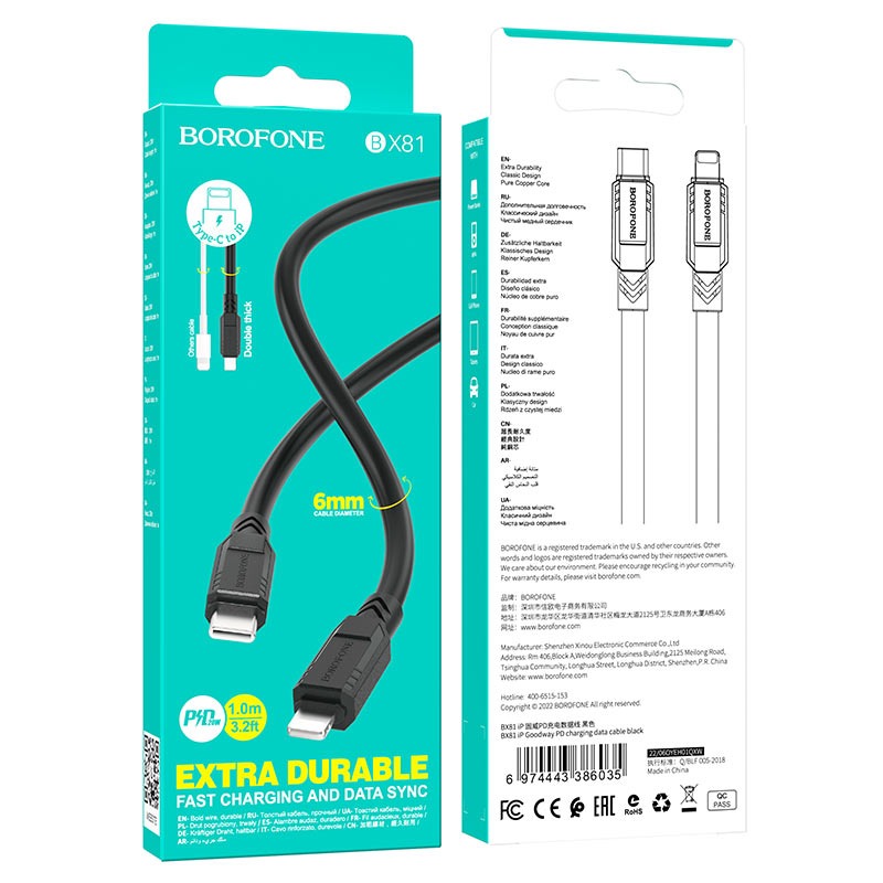 BOROFONE BX81 Goodway, кабель для зарядки и передачи данных USB-C на Lightning, 1м, поддержка быстрой зарядки PD 20W