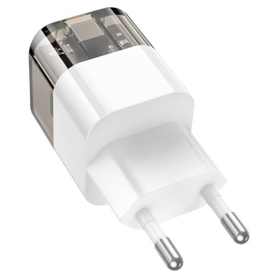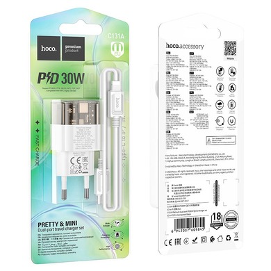 C131A Platinum, зарядное устройство с одним Type-C 30W и одним USB-A 18W выходами, EU штекер, набор с кабелем 1м Type-C на Lightning или Type-C на Type-C