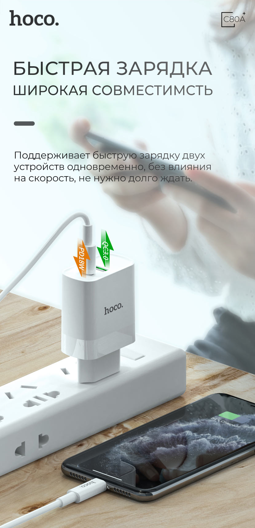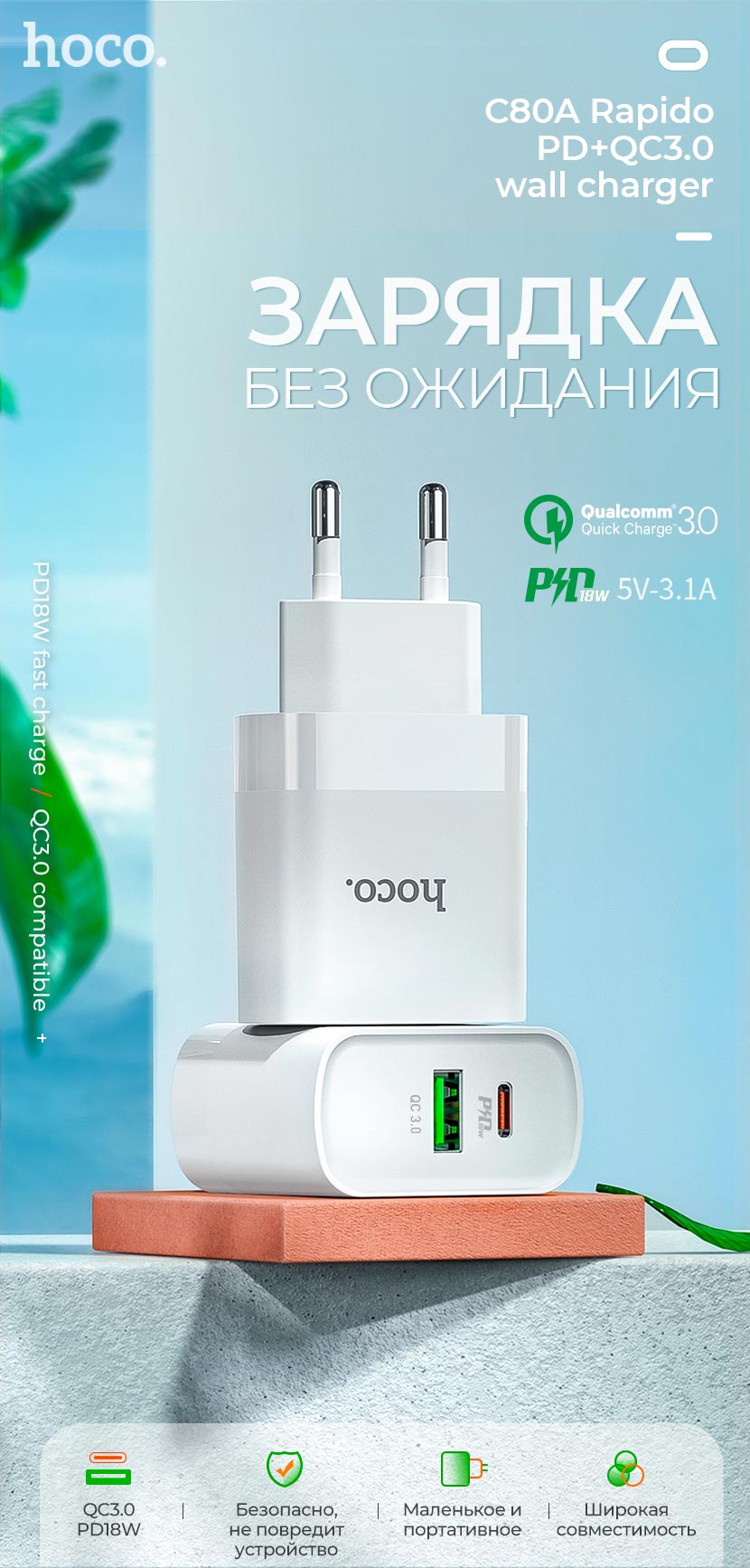 Зарядное устройство Hoco “C80A Rapido” PD + QC3.0