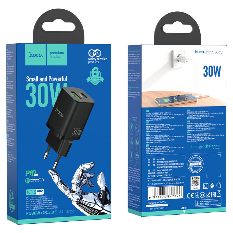 Зарядное устройство Hoco “N13 Bright” PD30W + QC3.0 EU