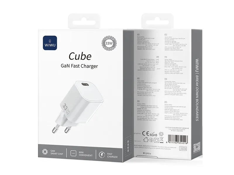 Зарядное устройство  WIWU Cube Wi-G015 EU 33W GaN White – это компактный и внешний гаджет, который идеально подходит для устройства быстрой зарядки. С помощью технологии GaN (нитрид галлия) это устройство обеспечивает высокую эффективность и нагрев, что делает его безопасным и обратным. Модель поддерживает мощность до 33 Вт, что обеспечивает зарядку даже требовательных устройств.